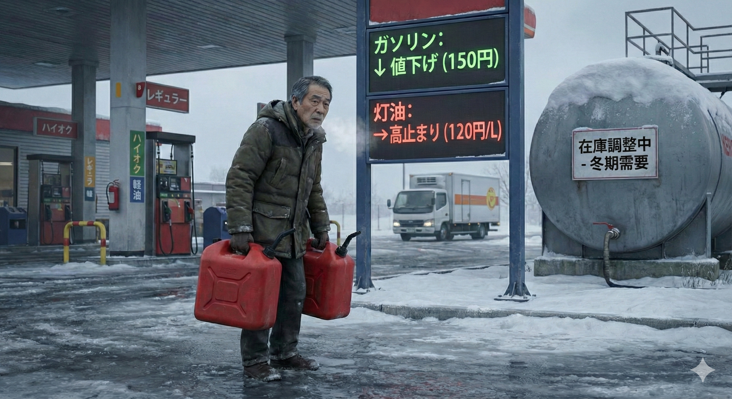 - 在庫回転の遅れ:高い時期に仕入れた灯油がまだタンクに残っている。