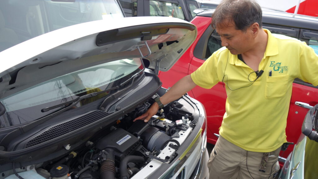 今回の取材で大友店長がボンネットを開け、エンジンルームを直接指差しながら説明してくれました(写真参照)。「EARTH DREAMS」と刻まれたエンジンカバーの周囲は清潔で、オイル滲みも見当たりません。「ここの状態を見れば、前のオーナーがどれだけ丁寧に乗っていたかがわかります」と店長。カーセンサーの写真では絶対に見えない「中身」を、プロの目が確認済みです。